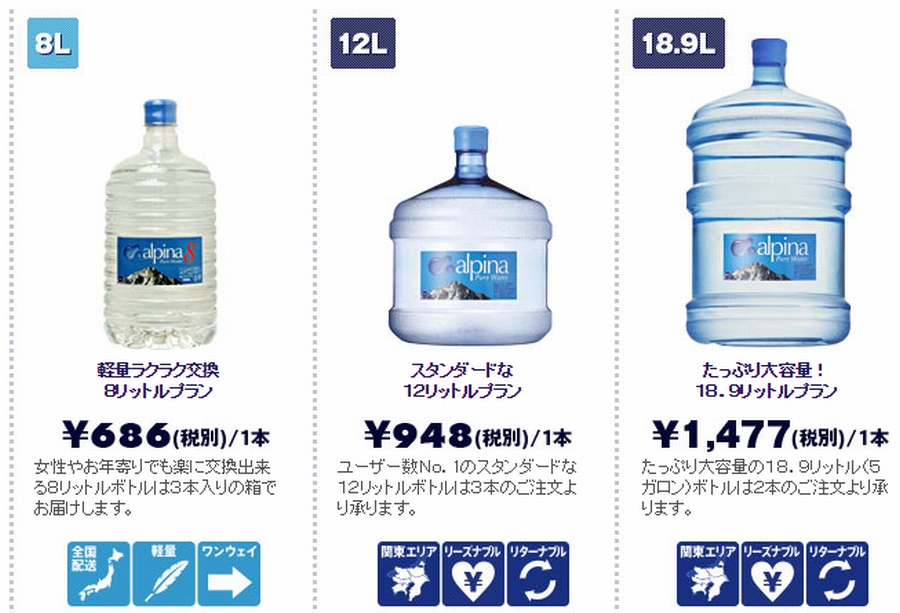 | 人気のウォーターサーバー「アルピナウォーター」 | |